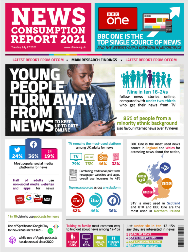 - Uutisten kulutus Isossa-Britanniassa 2020-21 -tutkimus julki (Britannian viestintäviranomainen Ofcom, heinäkuu):