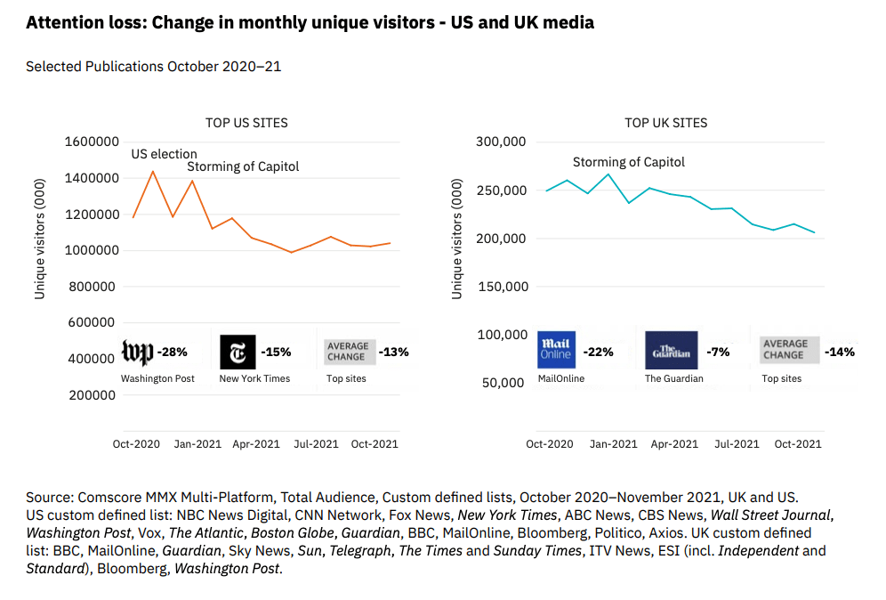 - Näin ennakoidaan: Keskeinen haaste on löytää uudelleen ne yleisöt, jotka vuonna 2021 menetettiin vuoteen 2020 verrattuna (ja heitä on paljon). Samaan aikaan keskitytään rakentamaan entistä syvempää lojaliteettia niihin, jotka kuluttavat uutisia enemmän. Mediatoimijat ovat aiempaa enemmän huolissaan nuorten yleisöjen tavoittamisesta. Monet pitävät osana ratkaisua uudentyyppisiä videoformaatteja, joko ns. natiivina somealustoilla tai mobiiliystävällisesti omilla alustoilla. Lyhytvideon arvellaan tekevän paluun myös mediatoimijoiden omiin sisältökokeiluihin Tiktokin räjähdysmäisen menestyksen myötä.