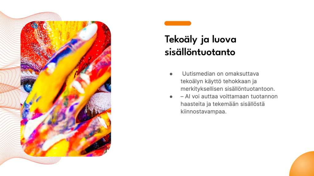 5. Kun tekoäly helpottaa luovan sisällön tuotantoa, kykeneekö uutismedia sitä kautta tekemään tehokkaammin ja merkityksellisempää sisältöä?
