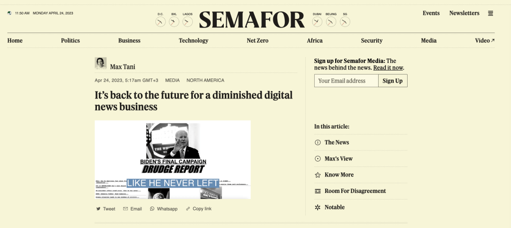 No, realistisesti ajatellen 20 vuotta vanhaan mediamaailmaan ei tietysti ole paluuta, eikä sitä vihjaillakaan – medioiden digisiirtymien rinnalle on syntynyt painetta muuttua eri tavoin myös digin sisällä. Semafor toteaakin, että digimedian seuraava suurempi evoluution vaihe ansainnan vinkkelistä on vielä hämärän peitossa, vaikka metaverseistä ja generatiivisistä tekoälyistä pöhistäänkin.