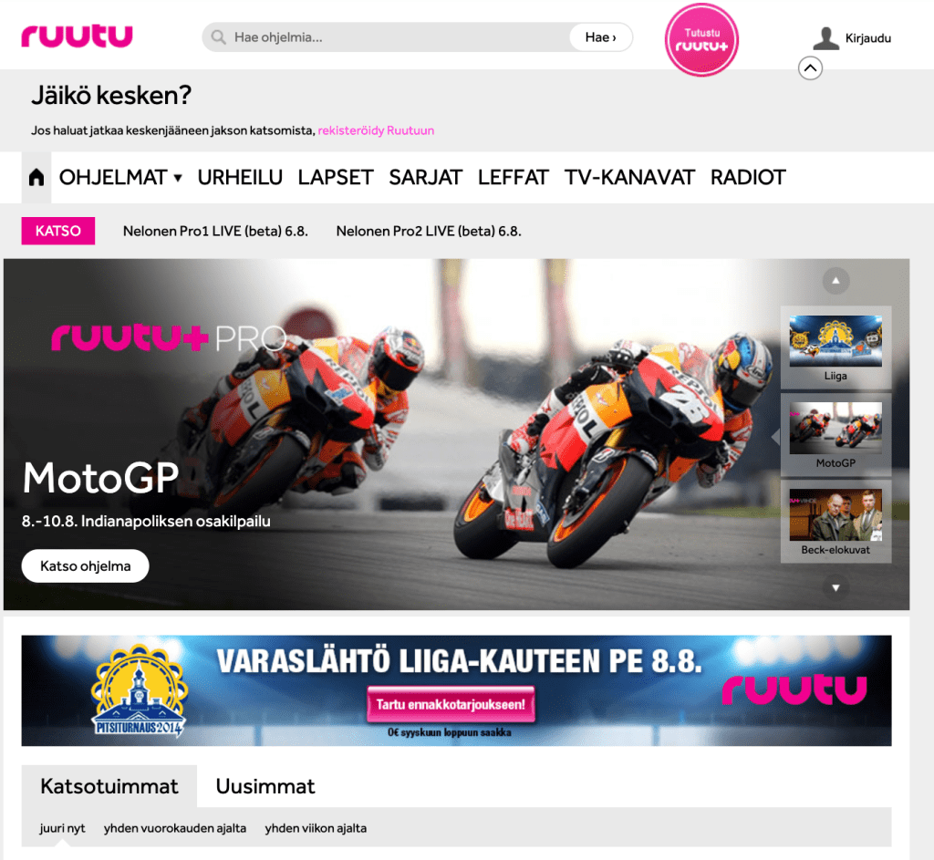 Sanoman Ruutu (Ruutu.fi) vuonna 2014: