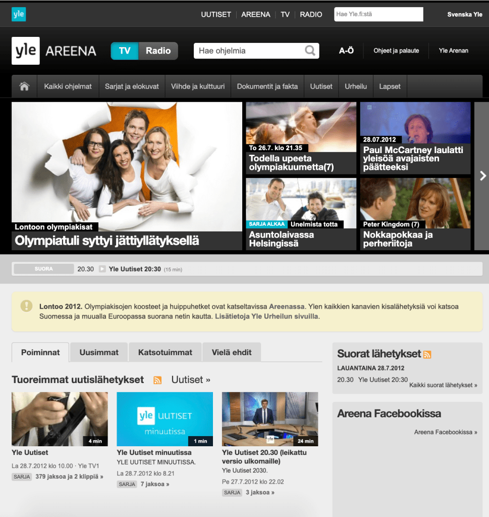 Yle Areena vuonna 2012:
