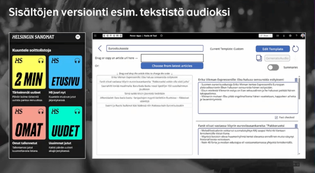 Koostamiini esimerkkeihin ruotsalaismedian tekoälytyökaluista voit puolestaan tutustua täällä.