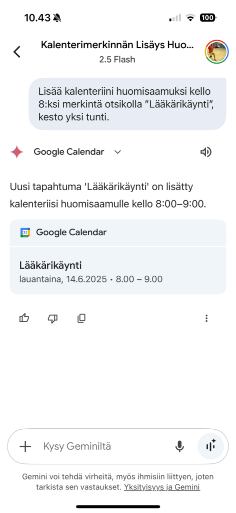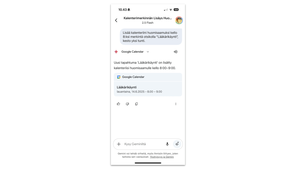 Kuukausimaksullinen Gemini-tilaus mahdollistaa nyt sen, että tekoäly kykenee lisäämään kalenterimerkintöjä kalenteriisi.