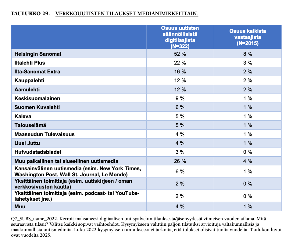 Poiminta: ”Verkkouutisista maksaneet seuraavat iltapäivälehtiä verkossa nyt hieman edellisvuotta yleisemmin, mikä voi osin johtua näiden lehtien uusista maksullisista Plus- ja Extra-osioista. Jotkin aiemmin uutisista maksamattomat iltapäivälehtilukijat ovat siis alkaneet maksaa näistä osioista.”