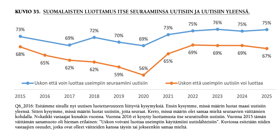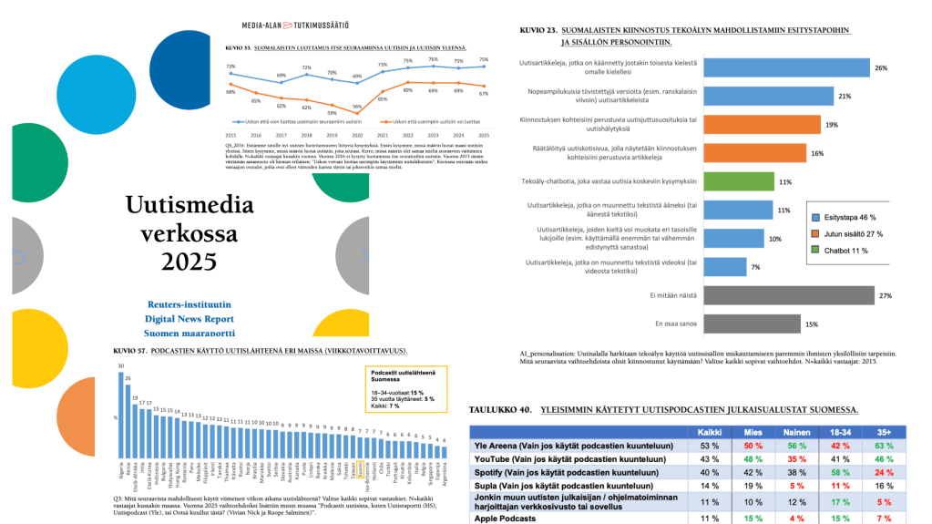 Se on taas se aika vuodesta, kun maailman suurin uutistutkimus julkaistaan. Oxfordin yliopiston Reuters-instituutin Digital News Report kerää tänäkin vuonna tietoa kymmenien maiden uutismediasta. Suomen-maaraportti on nimeltään Uutismedia verkossa 2025.