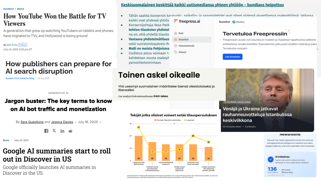 Uutismedian tekoälyhankkeista pääset perille myös minun päivittämästäni GenAI in Media Trackerista, johon lisäsin juuri useita esimerkkejä heinäkuulta 2025.