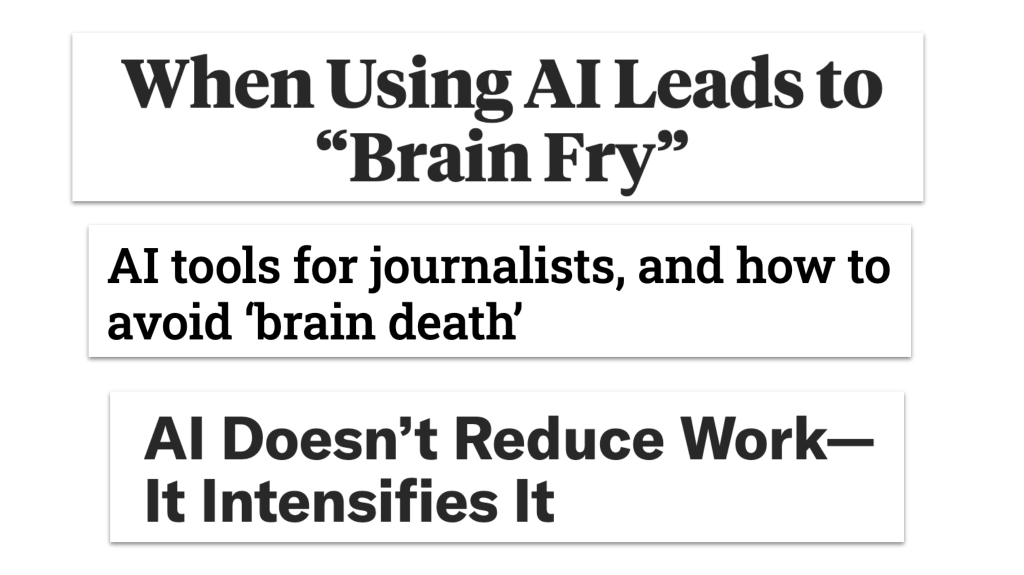 1. Miten hyödyntää tekoälyä (journalistisessa) työssä siten, että oma ajattelu ei taannu? Kärjistäen: miten välttää “aivokuolema”