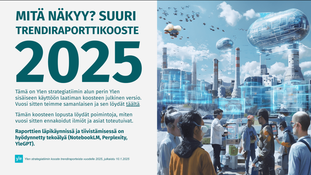 - Ei vuosi 2026 ole tässä yhtään helpompi kuin 2025. Kuulostaa ehkä itsestäänselvyydeltä, mutta tämä tuli jälleen mieleen, kun Reuters-instituutti kertoi tuoreesta tekoälykyselystään brittijournalisteille. Tekoälyn käyttö on yleistä, mutta melko rajoittunutta. Strateginen johtaminen ja koulutus eivät ole pysyneet yksittäisten innostujien tahdissa. Vain noin kolmannes kertoi työnantajansa tarjoavan koulutusta tekoälytyökalujen käyttöön.